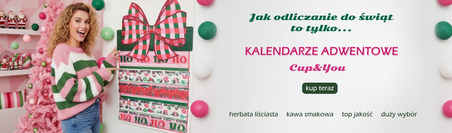 Nie wiesz jaki prezent kupić mamie? Nie wiesz jaki prezent kupić tacie? Nie wiesz jaki prezent kupić bratu? Nie wiesz jaki prezent kupić siostrze? Nie wiesz jaki prezent kupić dziewczynie? Nie wiesz jaki prezent kupić chłopakowi? Nie wiesz jaki prezent kupić żonie? Nie wiesz jaki prezent kupić mężowi? Nie wiesz jaki prezent kupić babci? Nie wiesz jaki prezent kupić dziadkowi? Boże Narodzenie, Mikołaj, Dzień Babci, Dzień Dziadka, Walentynki, Dzień Kobiet, Dzień Chłopaka, Wielkanoc, Dzień Matki, Dzień Ojca, urodziny, jubileusz, ślub, prezenty dla niej, prezenty dla niego … lub inna okazja, inne wyjątkowe dni , które można uczcić z filiżanką kawy i herbaty w dłoni. Obdaruj swoich bliskich lub spraw sobie samemu prezent. No ale przecież herbatę i kawę nie trzeba pić z jakieś okazji . Wiosna, lato, jesień, zima – każda pora roku jest dobra aby sprawiać małe przyjemności sobie i bliskim. Dołącz do grona zadowolonych klientów, zaufały nam już tysiące kupujących - u nas kupujesz bezpiecznie! Przekonało się już o tym wiele osób od początku powstania marki, kiedy naszym debiutowym Prezentem był kalendarz adwentowy z herbatą i kalendarz adwentowy z kawą. sklep z herbatami CupAndYou.