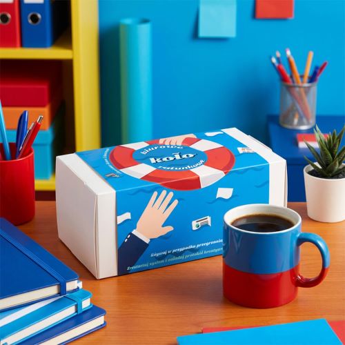 Biurowe Koło Ratunkowe od Cup&You to zestaw na dni, kiedy Excel hipnotyzuje, a mózg wyświetla komunikat: „przegrzanie styków!”. W środku masz 20 saszetek: 10 kaw sypanych smakowych i 10 herbat w różnych smakach i rodzajach – czyli dwa przyciski awaryjne.