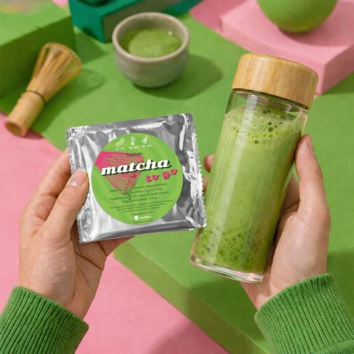 MATCHA TO GO to Twój codzienny rytuał energii zawsze pod ręką. Jedna porcja zamknięta w wygodnej saszetce sprawia, że przygotujesz ją gdziekolwiek jesteś – w pracy, w podróży czy na spacerze. Wystarczy wsypać, zalać wodą i energicznie wymieszać, by w kilka chwil cieszyć się intensywnym smakiem i naturalnym pobudzeniem. Bez zbędnych akcesoriów, bez czekania – czysta przyjemność i energia wtedy, kiedy jej potrzebujesz.